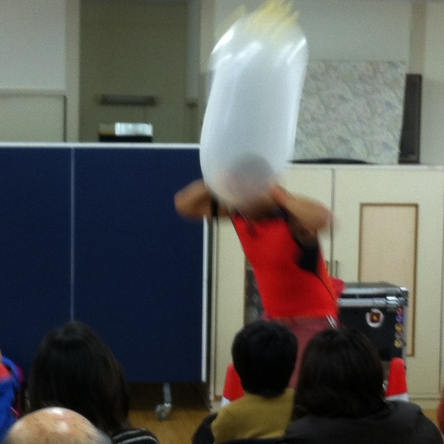鳴子台学区の子供会のクリスマス会行って来ました。 私の家は違う学区なのですが知り合いに来ても良いですよと言われて、 普段何もやっていないので恐縮ですが子供と一緒に参加しました。 オマールえび さんという大道芸の人が来てとても面白かったです。 おまけに子供たちは沢山のお菓子、私にも沢山のお土産頂きました。